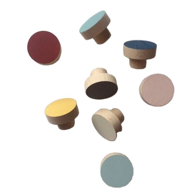 Round Wooden Knobs Color Pulls Kitchen Cabinet Children Room