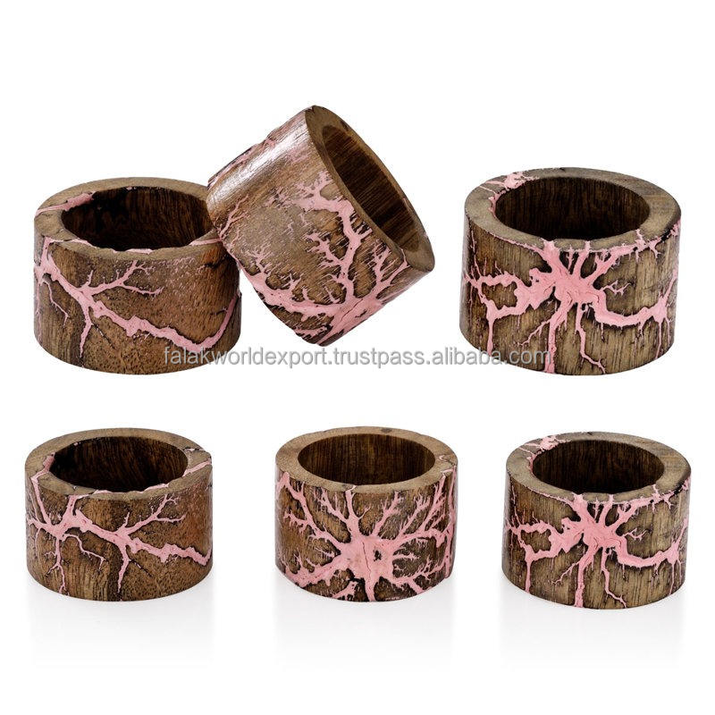 Luxury Wood Napkin Ring with Resin Stripe Decoration Handmade Ceramic Napkin Holder for Table Wedding Party for Kitchen Use FWE