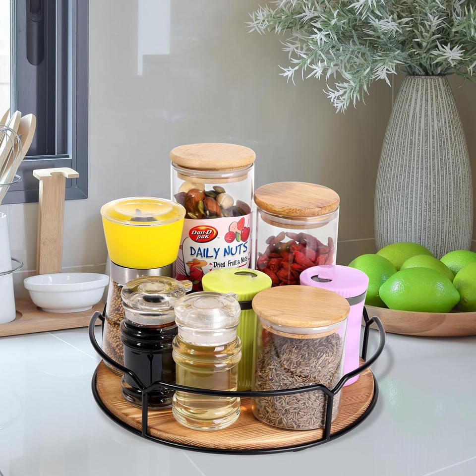 Acacia Wood Handmade Durable Rotating Storage Tray Kitchen Spices Organizer Modern Dining Table Coffee Bar Cabinet Shelf High