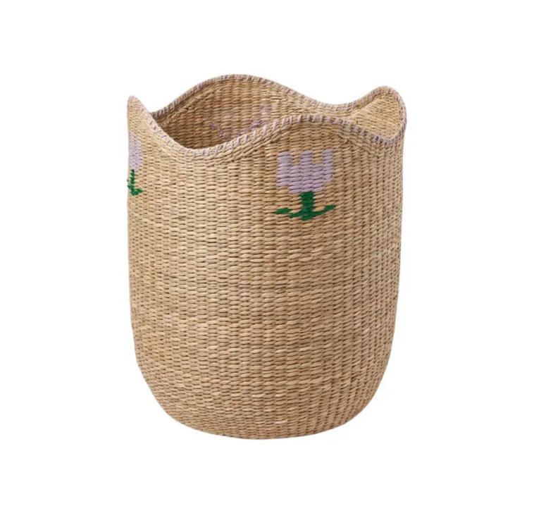 Round Woven Colorful Flowers Seagrass Basket Colorful Storage Baskets Kitchen Use Clothes Baby Laundry - Cloth Material