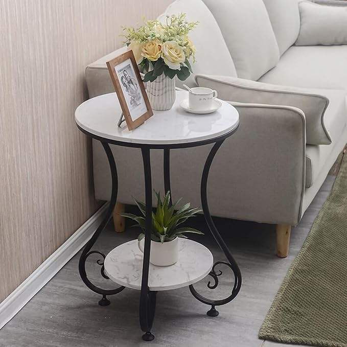 Round metal side table with marble top for elegant home decor and modern furniture setup