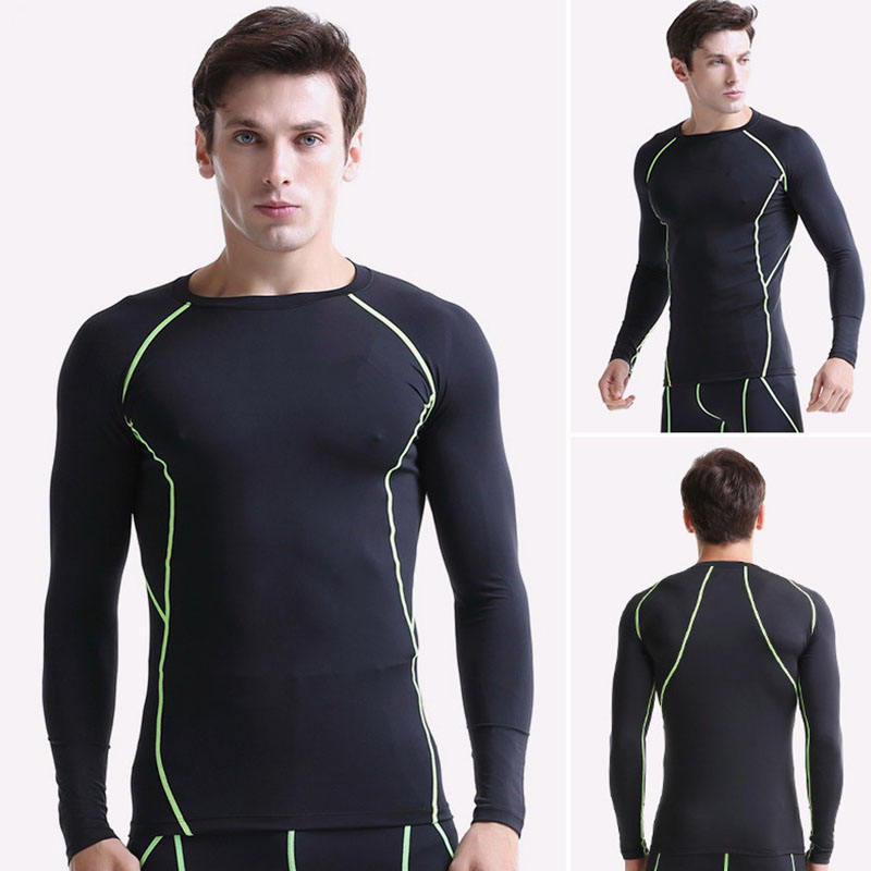 Round neck and long sleeve shirt Two Piece Set Sportswear Men Sports T-shirt Legging Suit Workout Breathable Yoga Set Clothes/
