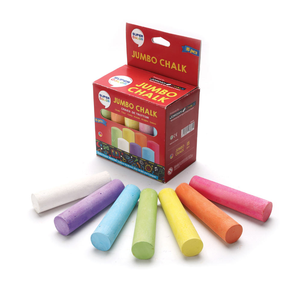 Round Non-Brittle Jumbo Chalk Compact Card Box with 15 Chalks 7 Vibrant Colors Per Box JordanChalk SW15C
