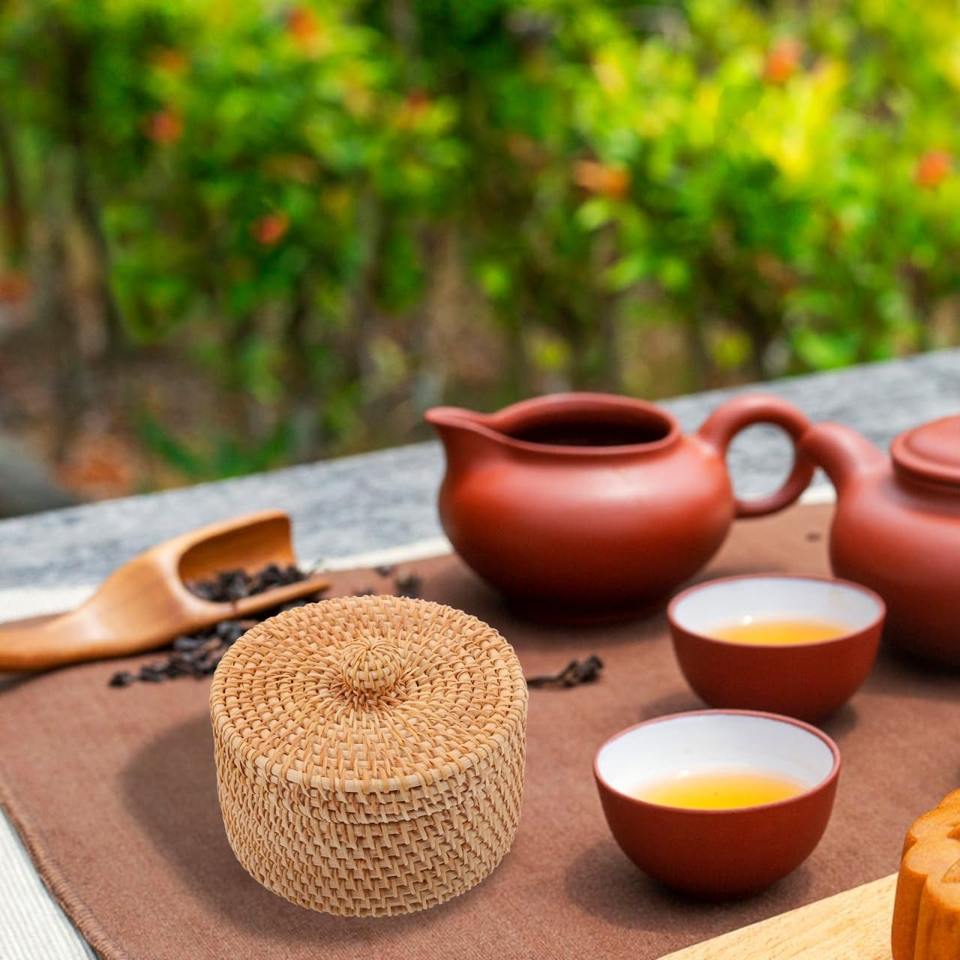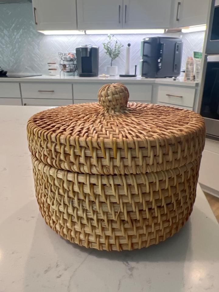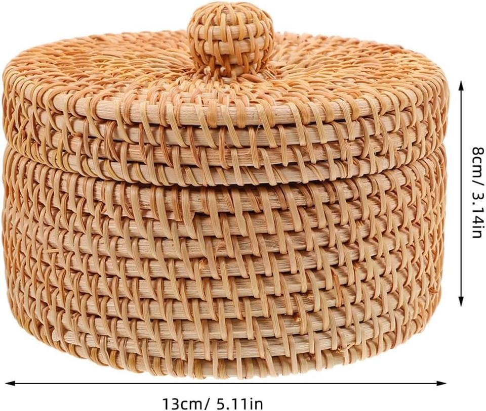 Name:Round rattan makeup box with lid Size: D5 x H3 inch