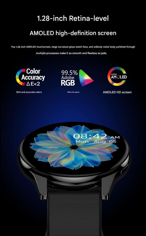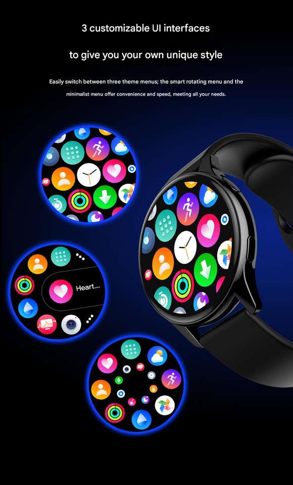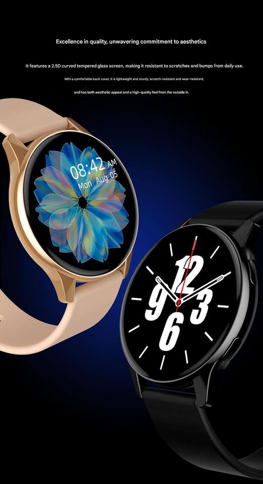 Round screen, Bluetooth calling, heart rate monitoring, step counting, call notification, smartwatch