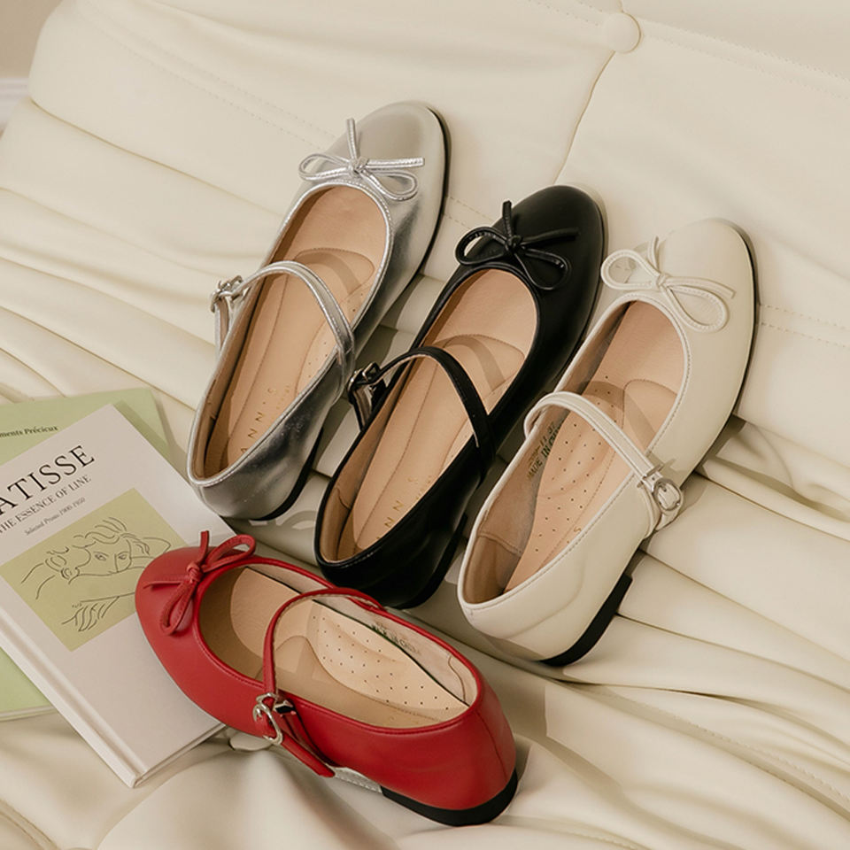 Round Toe Mary Jane Doll Flats Genuine Leather Upper Padded Heel Lining Buckle Strap Closure
