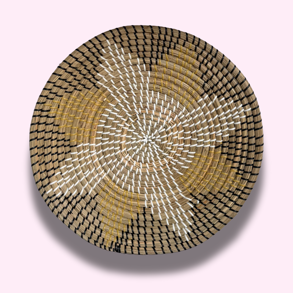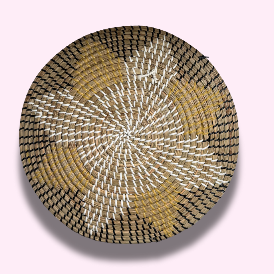 Product Name:Round wall decoration with flower pattern made from natural seagrass