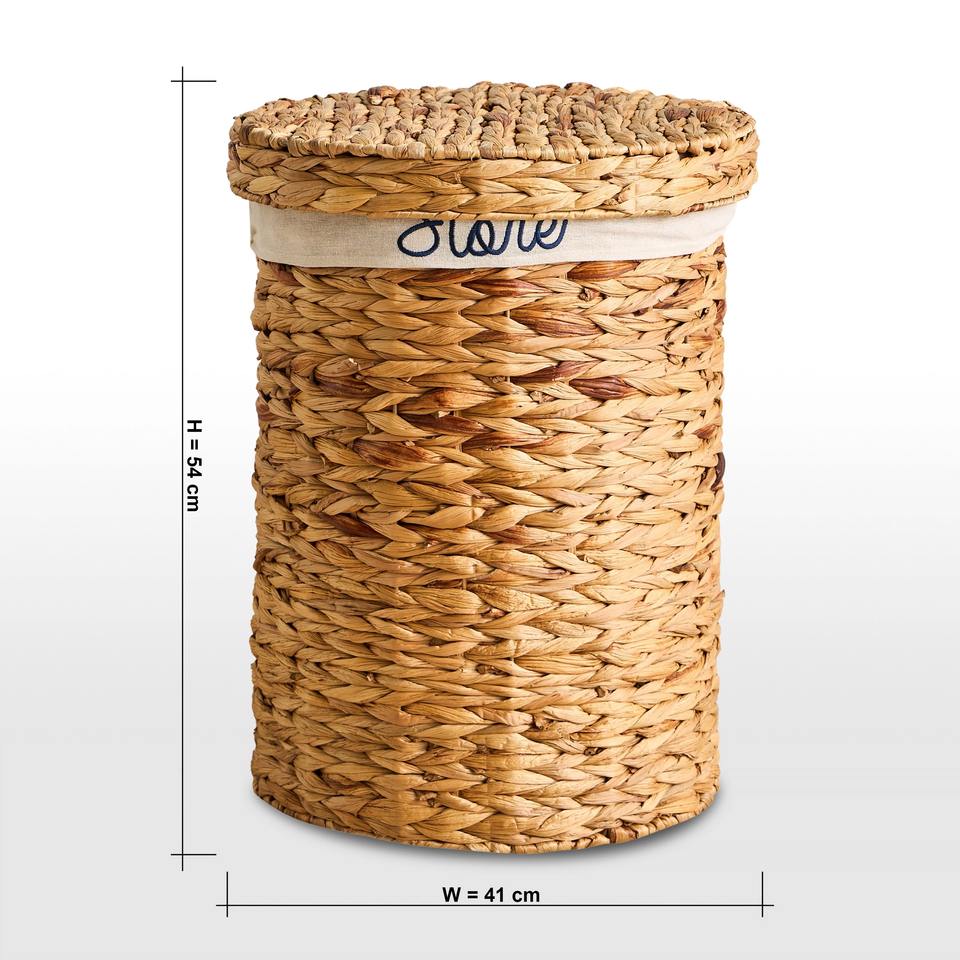 Size: D16 x H21,3 inch:Round water hyacinth basket with fabric lining and lid