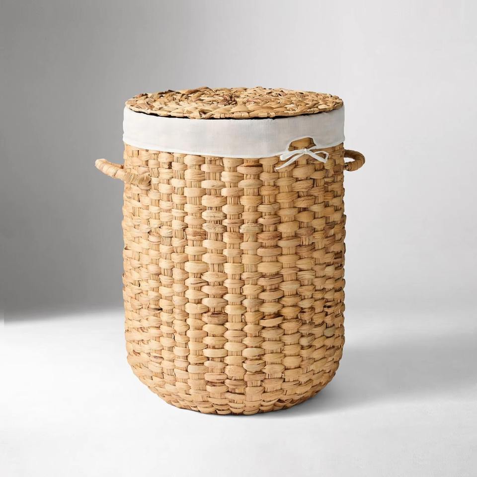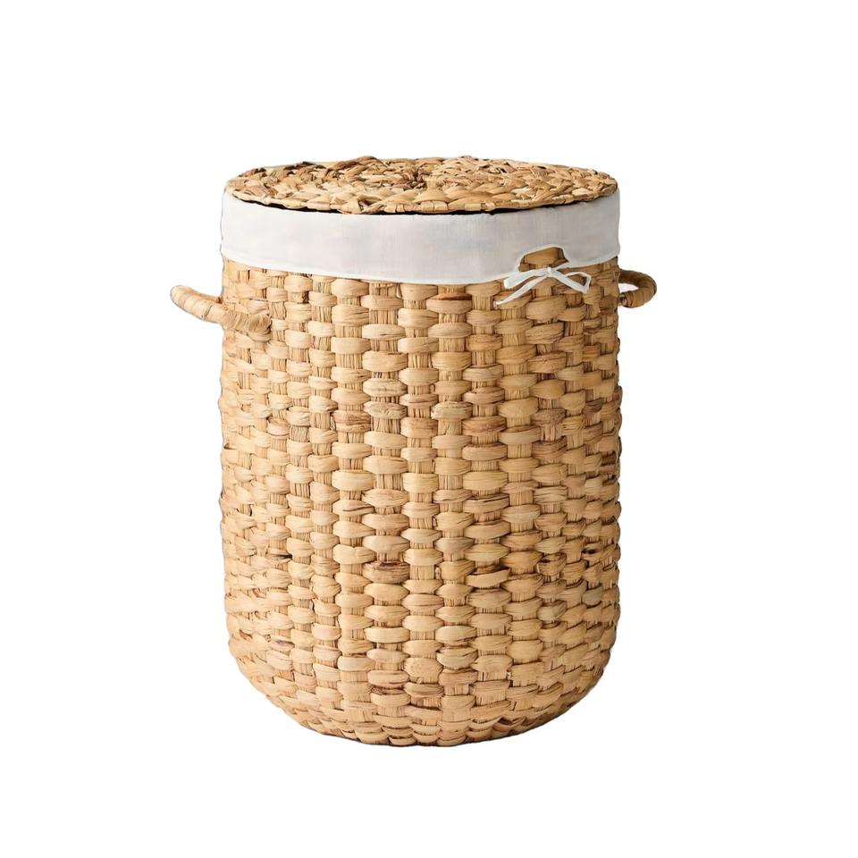 Round water hyacinth basket woven in a checkerboard pattern Handmade Storage Basket Wholesale eco-friendly Made in Vietnam