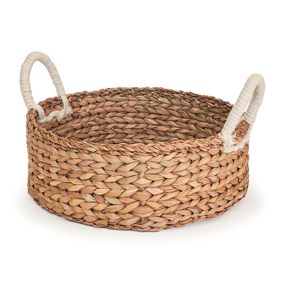 Size: D16 x H6 inch:Round water hyacinth storage basket with handle