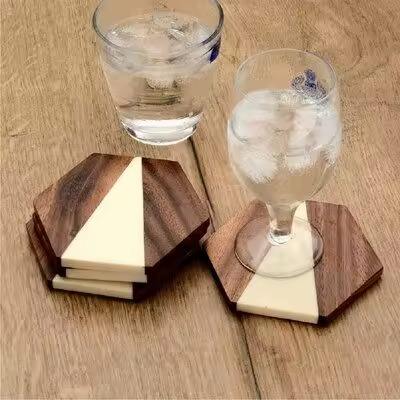 Round wooden cup holder coaster set with polished surface natural wood texture suitable for all types of mugs cups glasses daily