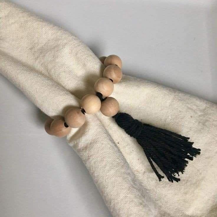 Round wooden napkin ring with natural bead & jute tassel farmhouse rustic boho napkin holder for dining wedding party handmade