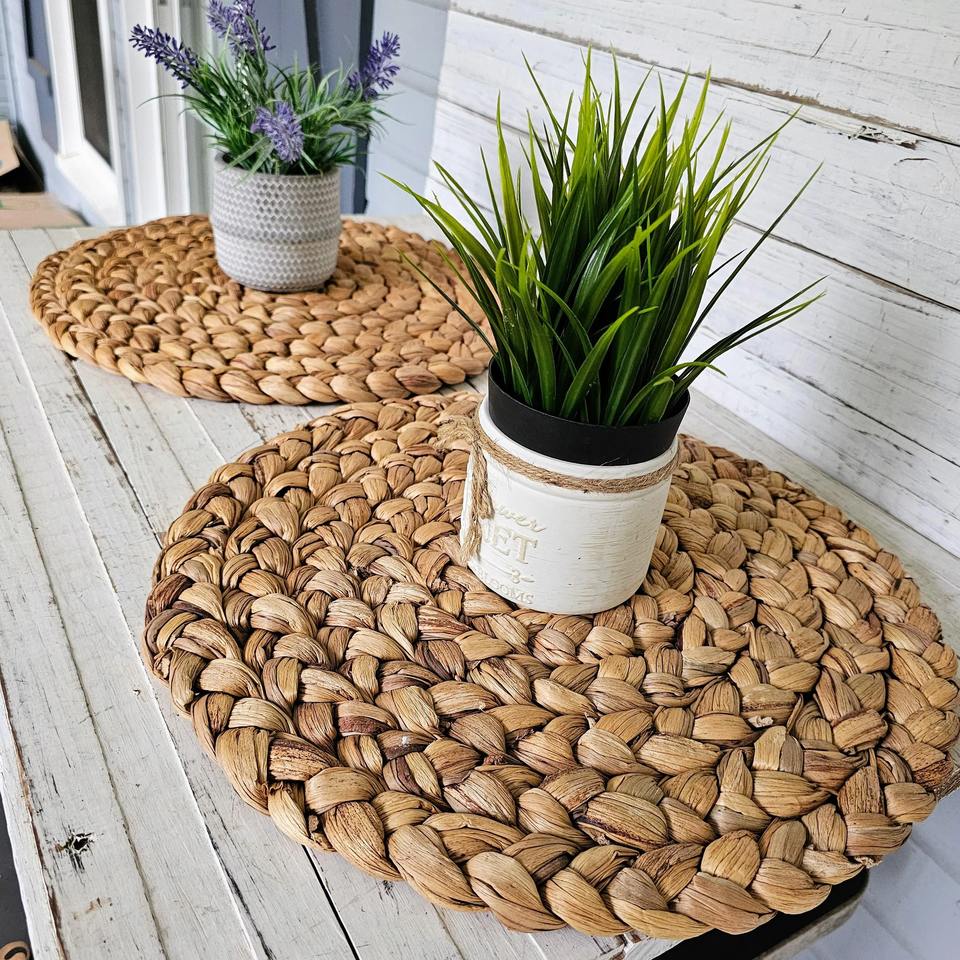Round woven water hyacinth placemat:Size: D15 inch