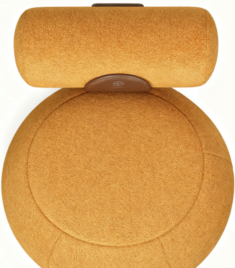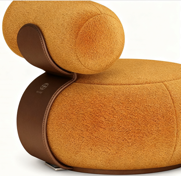 Rounded Artistic Shape, Ergonomic Comfort, Soft Bouclé Upholstery, Leather Accent Backfeature
