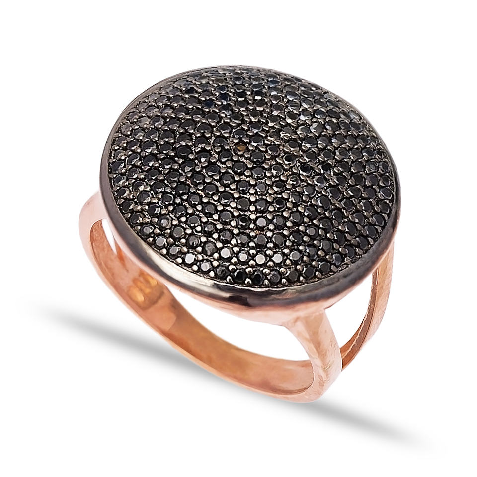 Rounded Cluster Design Black Zircon Stone Ring Turkish Wholesale Handcrafted 925 Sterling Silver Jewelry Ring