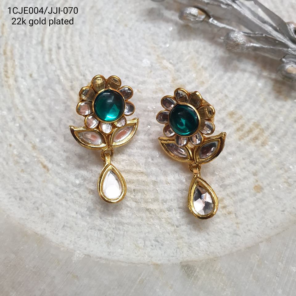 Royal 22k Gold Plated Emerald Stone Kundan Floral Earrings Fashionable High Quality Jewelry Earrings For Women And Girls