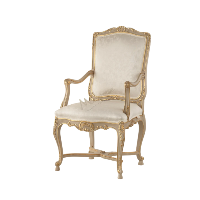 Royal Antique Baroque Solid Wood Dining Chair Cream Fabric Upholstery High-End Hotel Furniture