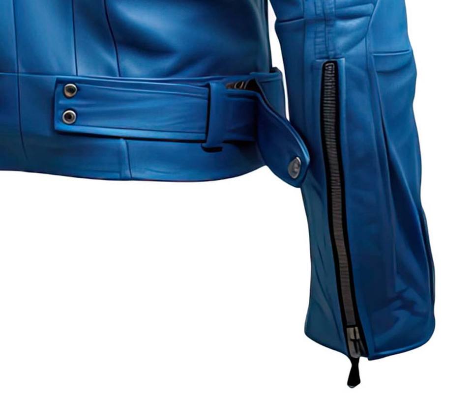Royal Blue Custom Leather Jacket Black Genuine Sheepskin Turn-down Collar Stylish Warm Sporty Scooter Outerwear Waterproof Men's