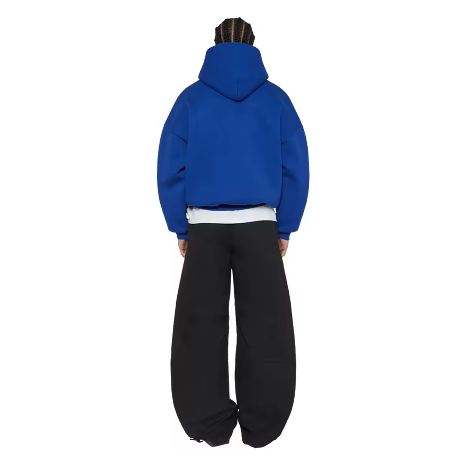 Royal Blue Polyester/Cotton Blend Winter Embroidered Heavyweight French Terry Boxy Cropped Streetwear Blank Plain Men's Hoodie