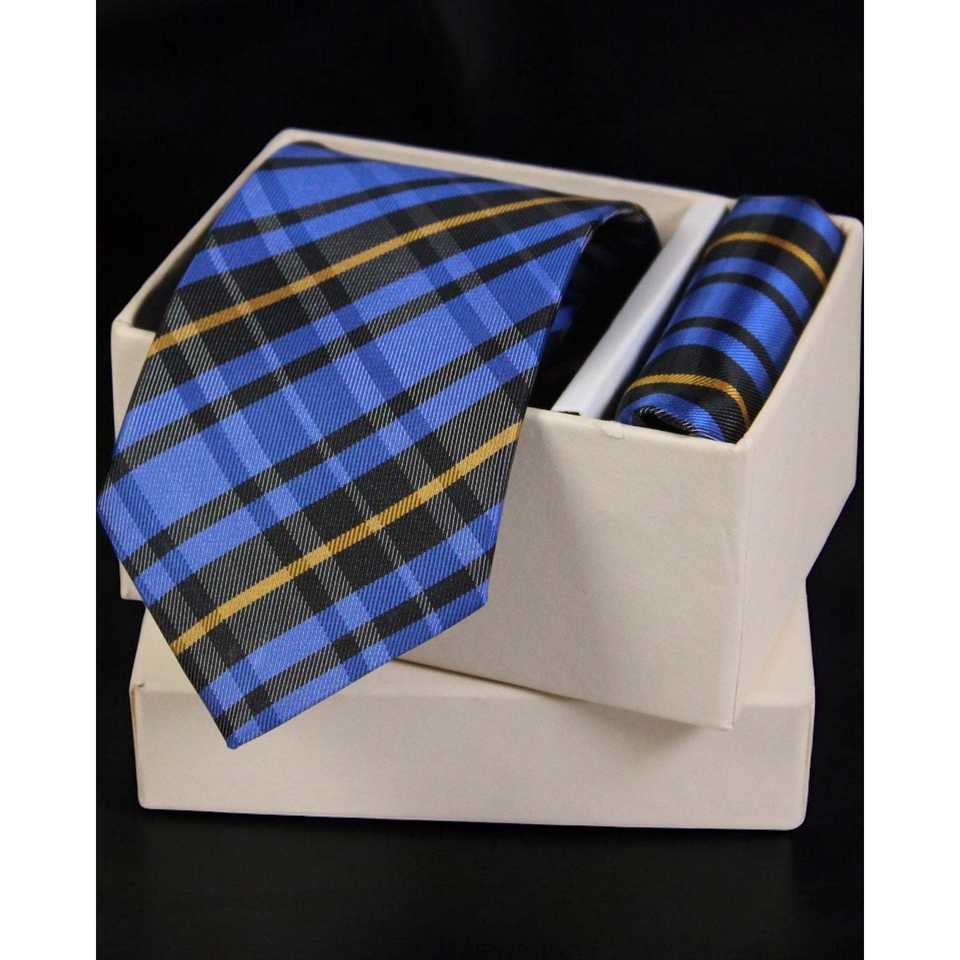 Royal Blue and Black Tartan Checkered Tie Set for Men Elegant Shirt Accessory