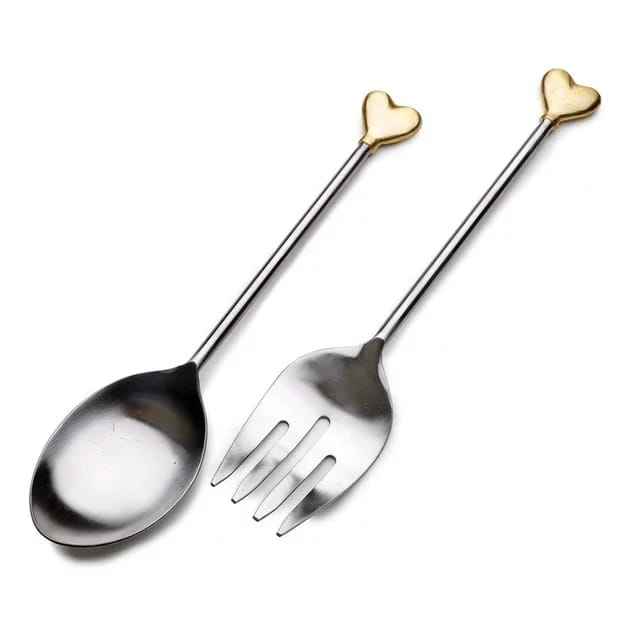 Royal Brass Spoon & Fork Set Gold Plated Salad Server Sustainable Salad Server Cutlery Set Royal Family Flatware Set