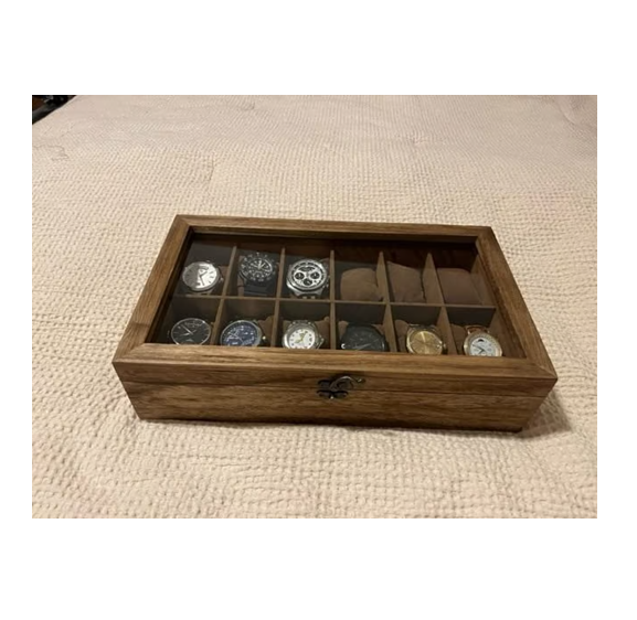 Royal Crafts Desktop Organizer Wood Watch Box Custom made latest Design With 12 Slot and Acrylic Lid At Wholesale Price