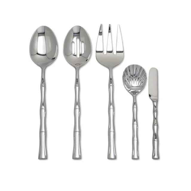 Royal Design Hand Finish Gold Plated Handle Stainless Steel Modern Five-Piece Flatware Set Dishwasher Safe Durable Mirror Polish