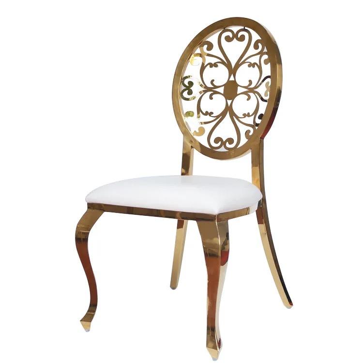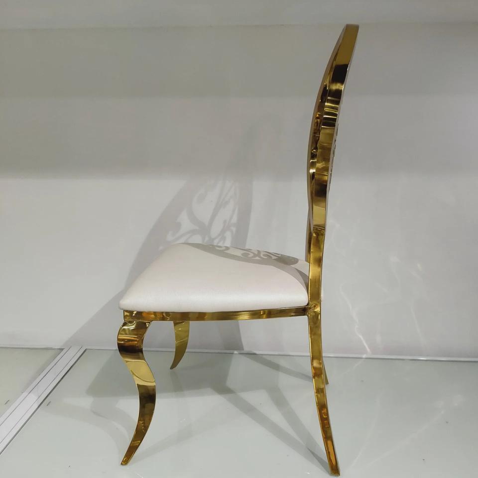 Royal Elegant Gold Stainless Steel Dining Chair with Curved Backrest for Hotels Restaurants Weddings Other Special Occasions