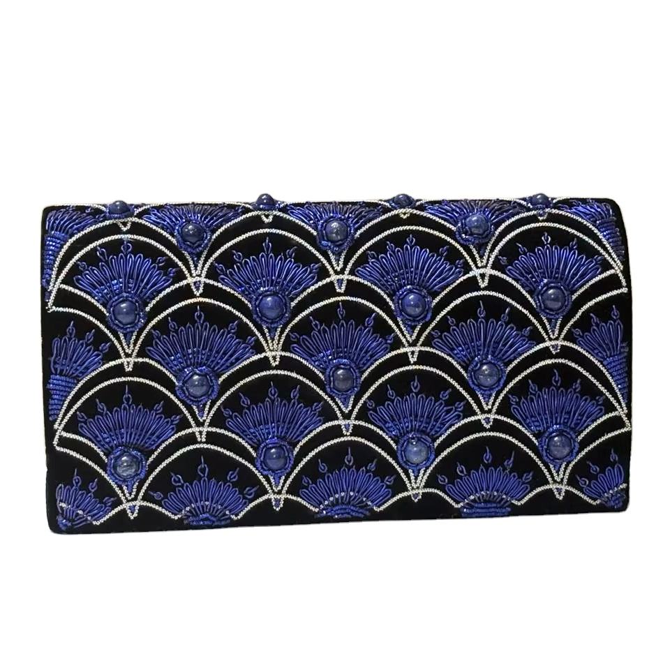 Royal Ethnic Lady Clutch for Women Handcrafted Velvet Intricate Zari Work Beading Water Resistant Traditional Elegance Evening