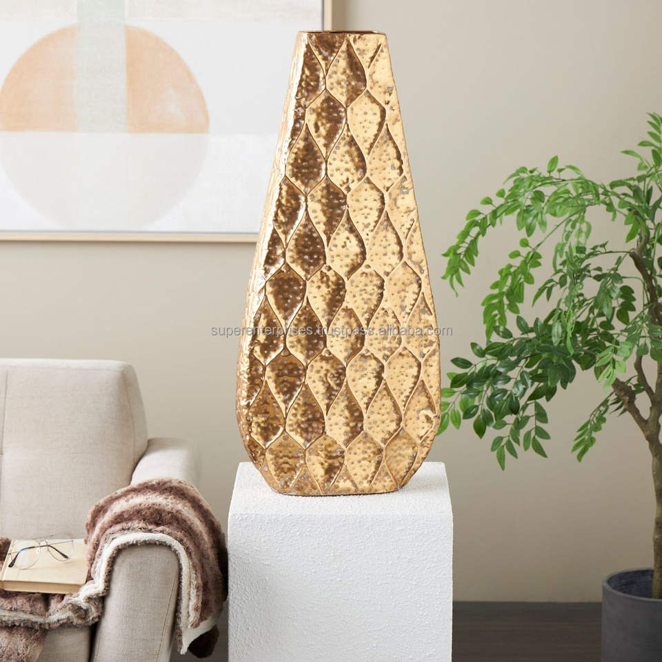 Royal Finish Metal Flower Vase For Elegant Home Decor Living Room Table Interior Styling Decorative Floral Centerpiece