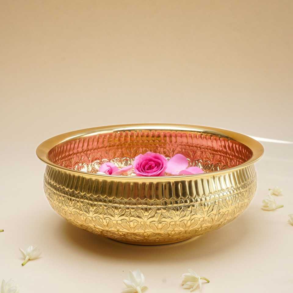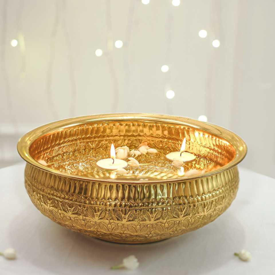 Royal Garden Brass Urli Elegant Decorative Handcrafted Metallic Bowl Perfect For Floating Candles Flower Arrangements