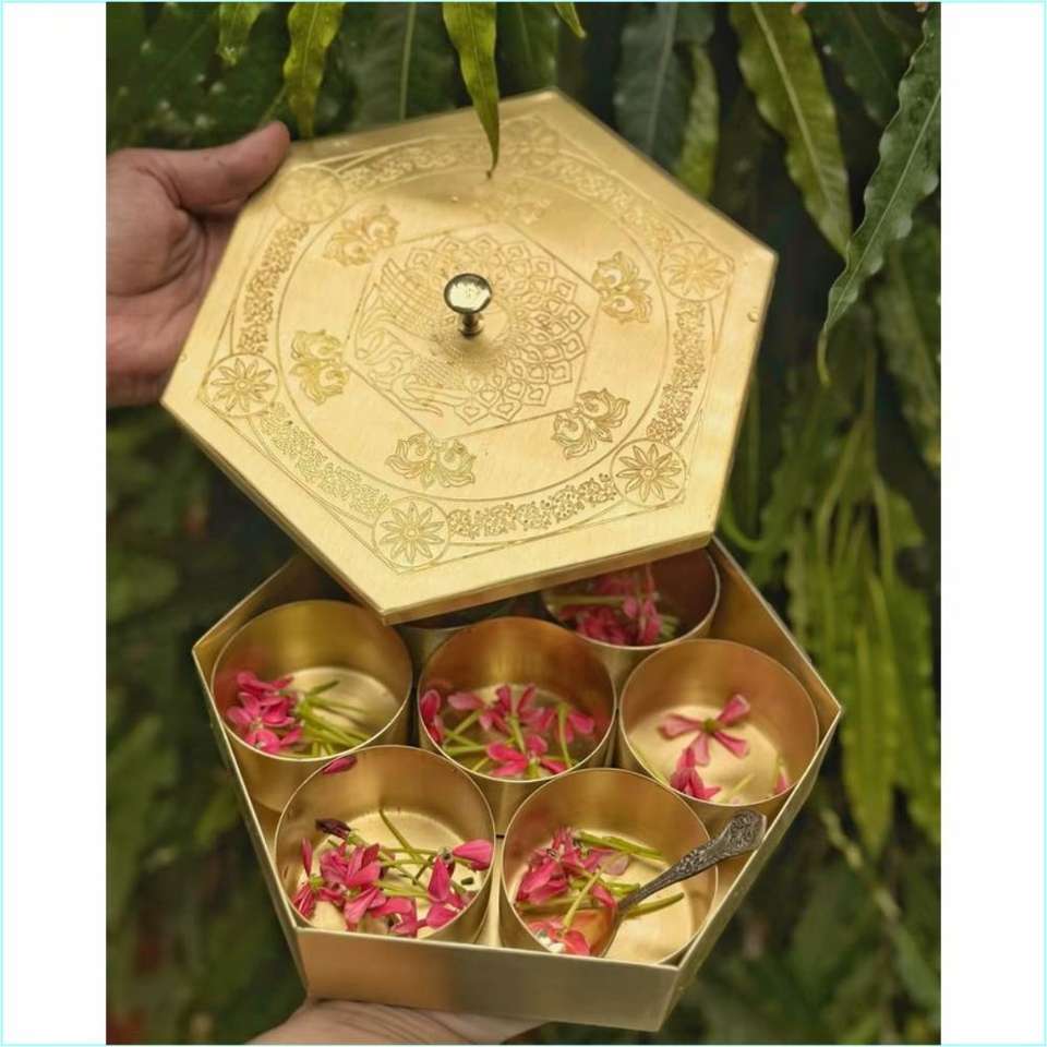 Royal Gold Masala Storage Box with Floral Carved Lid Perfect Spice Keeper and Elegant Kitchen Table Decor Gift