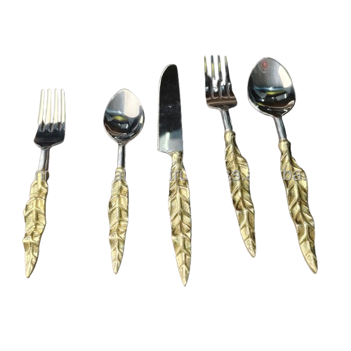 Royal Golden Feather Handle 5-Piece Cutlery Set Premium Stainless Steel Dinner Knife, Fork, and Spoon for Elegant Holiday Dining