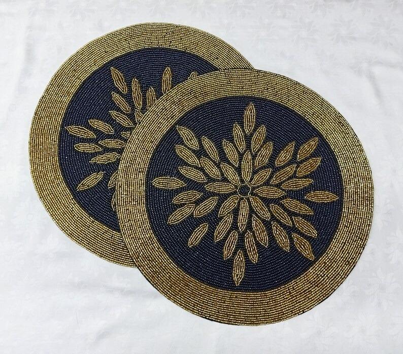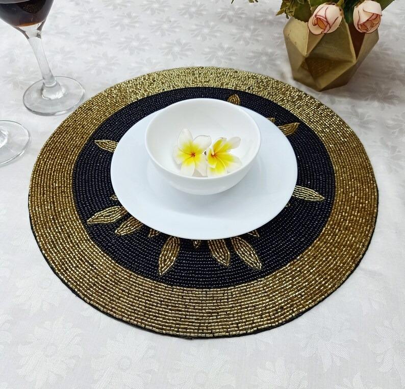 Royal Golden Luxury Round Bead Placemat Table Runner Mat with Embroidery for Elegant Dining Wedding Decor Festive Table Settings