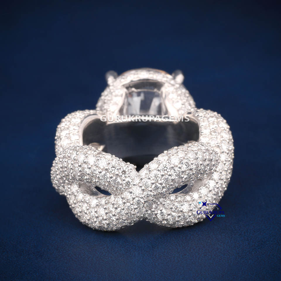 Royal Iced Out Round Moissanite Ring for Women Bold Custom Design 925 silver big Center Diamond Luxury Hip Hop Statement Jewelry