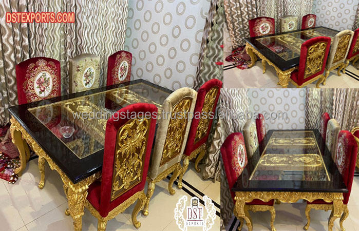 Royal Italian Style Heavy Carved Dining Set Antique Gold Carving Round Dining Table Set Stunning High Polished Dining Table USA