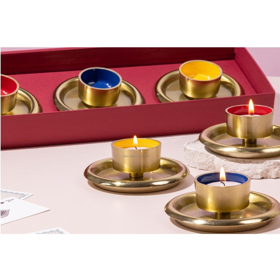 Royal Look Metal Tealight Candle Holder With Round Plate Enamel Color for Home & Christmas Lighting Decoration