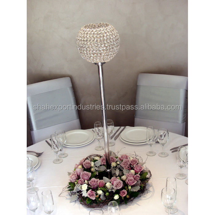 Royal Look Pedestal Metal Base Crystal Beaded Round Candle Holder Flower Vase Wedding Table Decoration Centerpiece