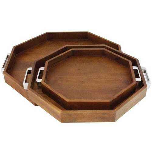 Royal Looking Natural Finished Rectangular Serving Tray For Tabletop Decor Wooden Serving Tray With Triangle Shape Handle