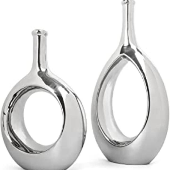 Royal Looking Silver Plated Finishing Flower Vases Set Of Two in Customized Shape For Centerpiece Table Top Decoration Items