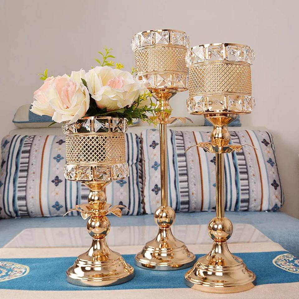 Royal Modern Crystal and Metal Candle Holder Wedding Easter Tabletop Centerpieces Set 3 Pcs Heat Resistant Custom Colors Shapes