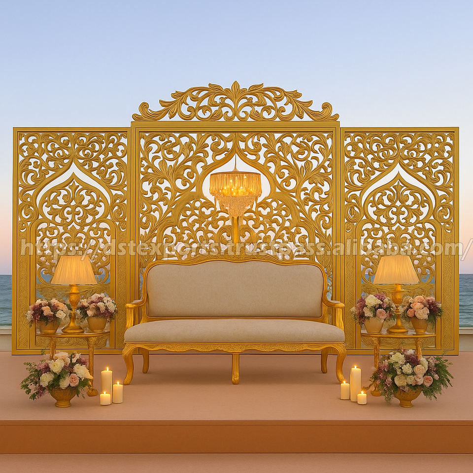 Product name:Royal Punjabi Wedding Stage with Wooden Panels And Swing