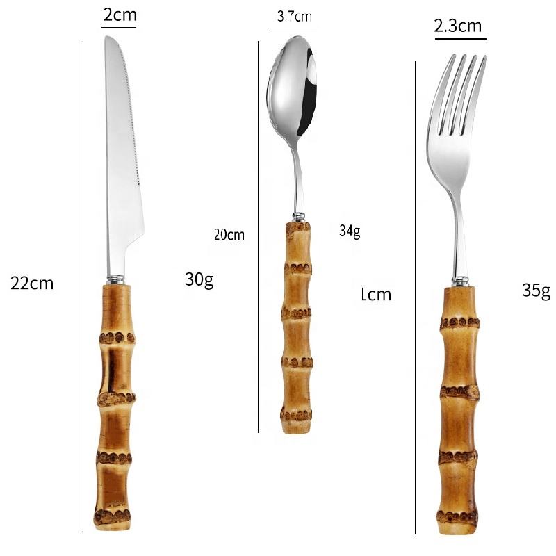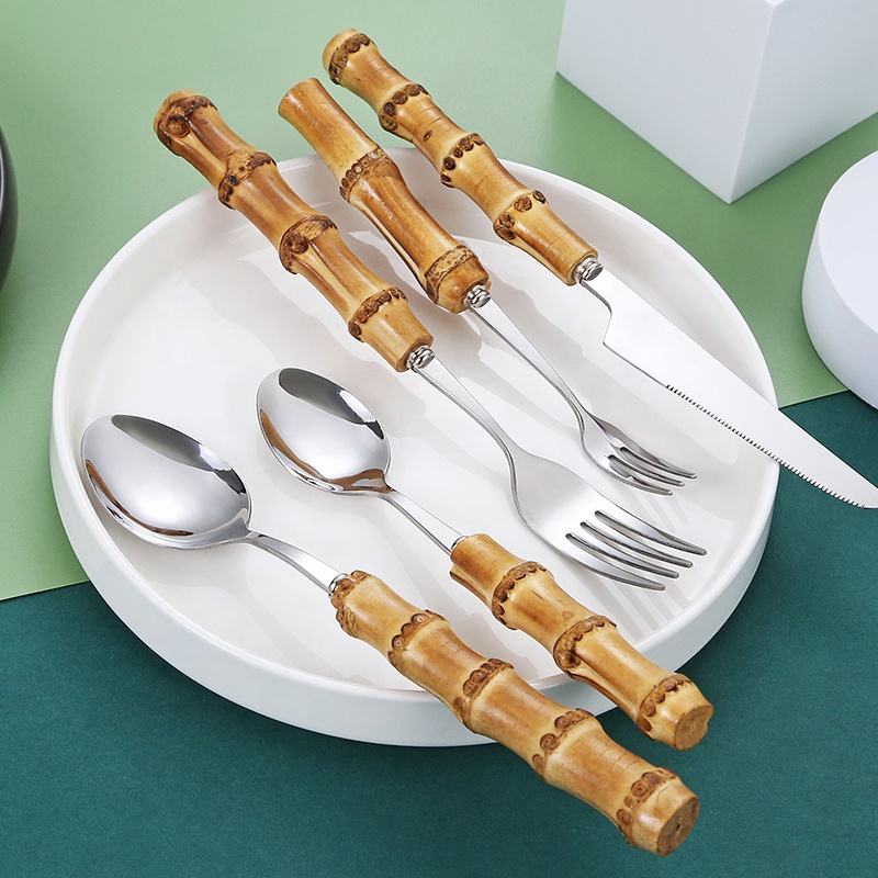 Royal Restaurant Stainless Steel Wholesale Stainless Steel Knife Spoon and Fork Bulk Flatware With Bamboo Handle