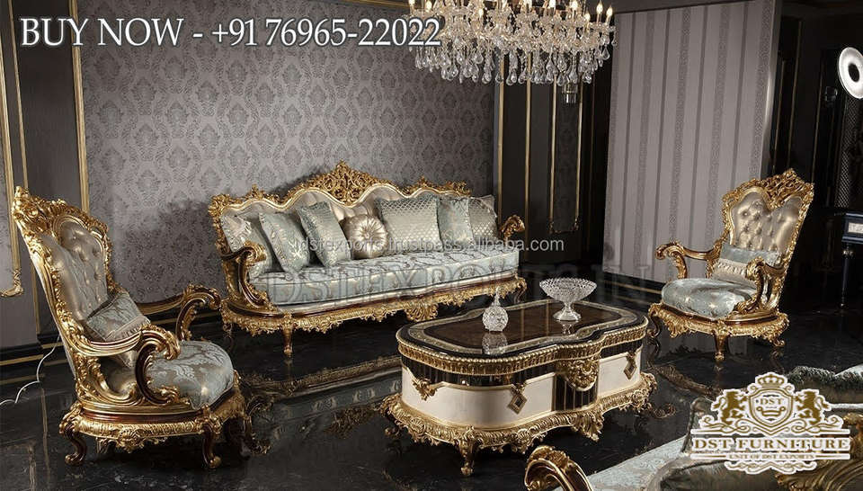 Royal Rich Gold Metallic Polished Sofa SetProduct name