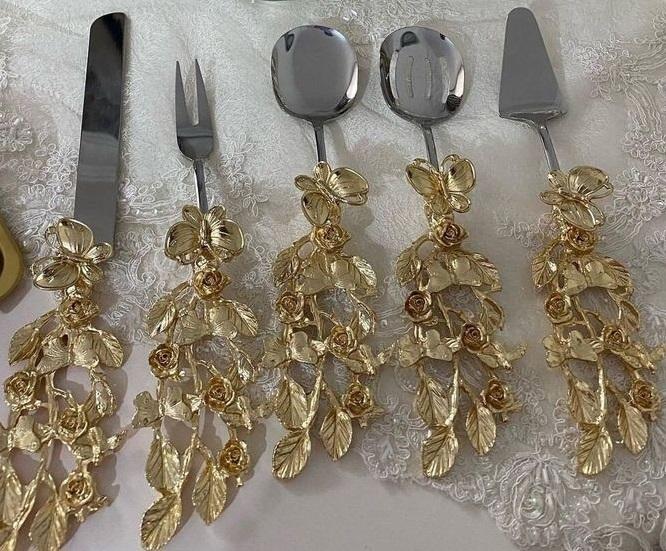 Royal Wedding Decoration Tableware Restaurant Dinnerware Stainless Steel Brass Metal Knife Fork Spoon Flatware Dinner Cutlery