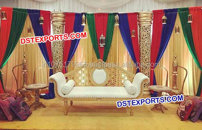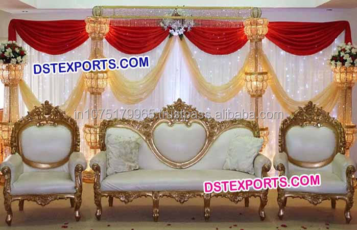 Royal Wedding Love Sofa Designer Wedding Two Seater Golden Sofa Gold Plated Wedding Hand Carved Sofa Australia Event Decor
