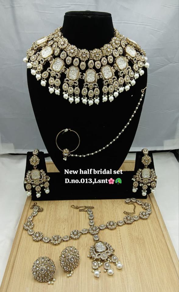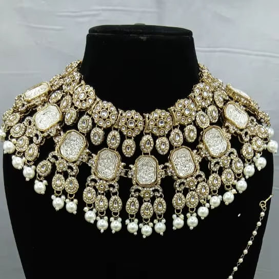 Royal White Alloy Ethnic Pearl Kundan Bridal Set Heavy Gold-Plated Choker Premium Handcrafted Engagement Wedding Party