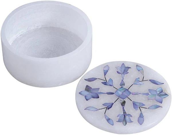 Handcrafted Marble Jewellery Box with Brass Inlay Work