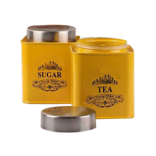 Royal Yellow 3-Piece Tea Sugar Stainless Steel Canister Set Classic Square Jar Eco-Friendly Metal Storage Food Capacity 5kg