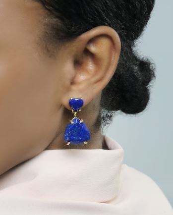 Royal blue stone earring trillion cut natural lapis lazuli double stone statement earring brass 18k gold plated women's earring